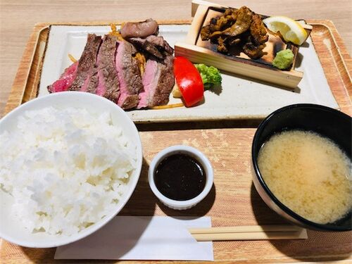 軽井沢のプリンス ショッピングプラザ、俗に言う軽井沢アウトレットの中のフードコートにあるステーキ 炭で、サーロインステーキと炙り板うに定食 ライス・スープ付を注文。 肉の焼き加減は特に聞かれませんでしたが赤みも残っていい感じ。 うにをわざわざ頼…